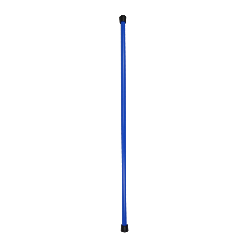 Longueur adaptée à toutes les morphologies et diamètre facile à tenir pour tout le monde (28mm). Tube en acier recouvert de polyéthylène pour plus de confort. Ne se plie pas. Extrémités recouvertes par un gros bouchon caoutchouc (n’abîme pas les planchers). 2kg - Bleu