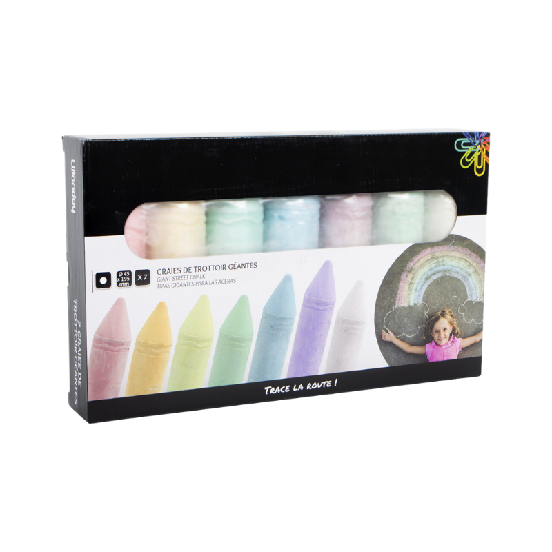 Boite de 7 craies pour dessiner sur bétons et enrobés. 7 coloris.