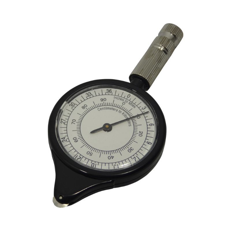Permet de mesurer le kilométrage sur une carte. Dimensions : l.96mm x L.45mm. Epaisseur : 16mm. Poids : 24g.