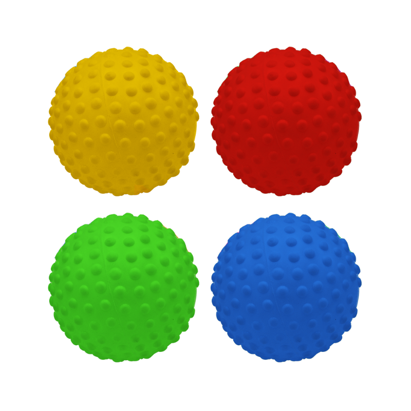 Balle tactile offrant une prise en main facile et sécurisante grâce à ses picots. Balle légère et solide. Matière : PVC.