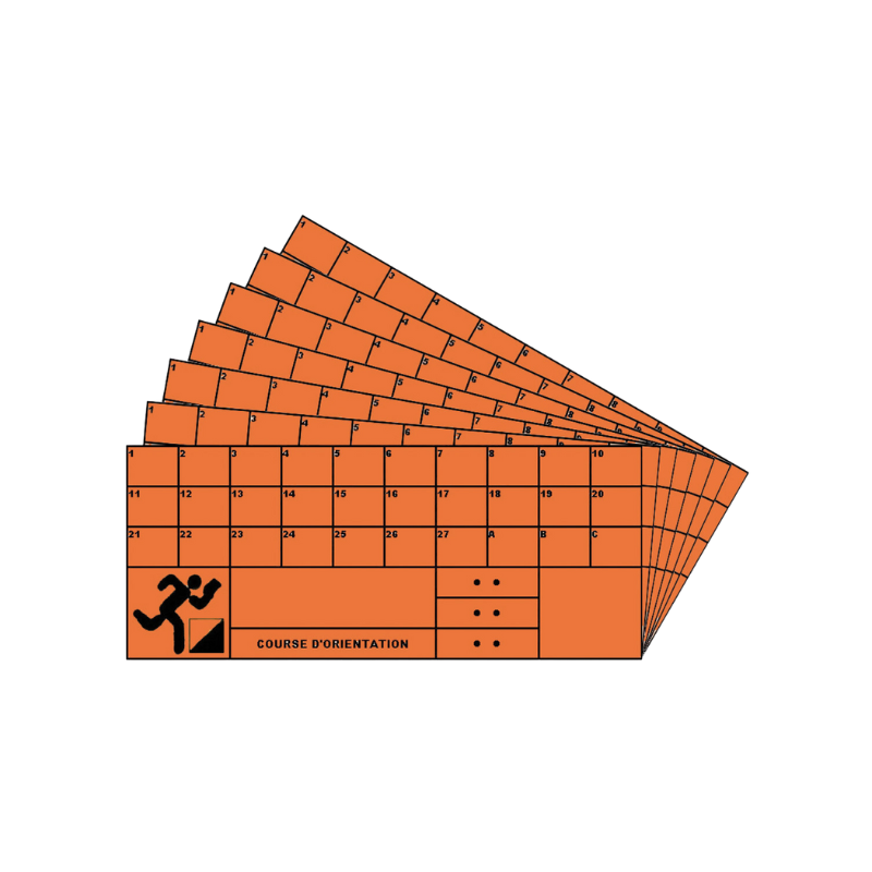 Lot de 50 cartons de contrôle pour toutes les courses d’orientation. Dimension : Long.19 x larg.9cm.