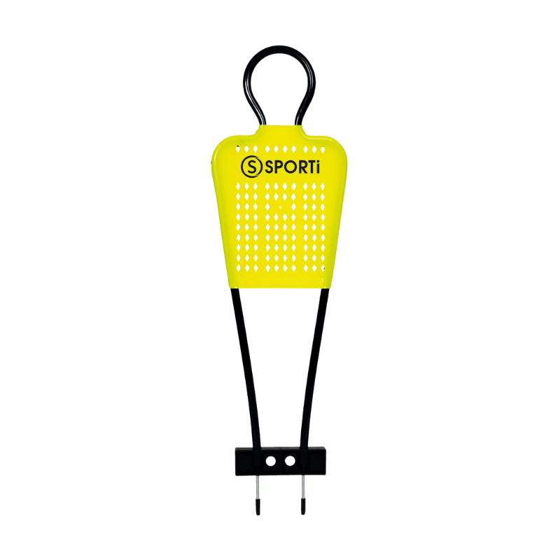 Structure en plastique et plastron en plastique. Se fixe au sol grâce à ses pointes en métal. Largeur 33cm, Hauteur 106cm.