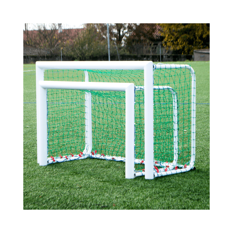 Le filet (vert PE câblé 2,5mm, maille simple 70mm avec nœuds) s’installe très facilement grâce aux clips sur le cadre et aux anneaux brisés. Livré avec des sardines en forme de U.