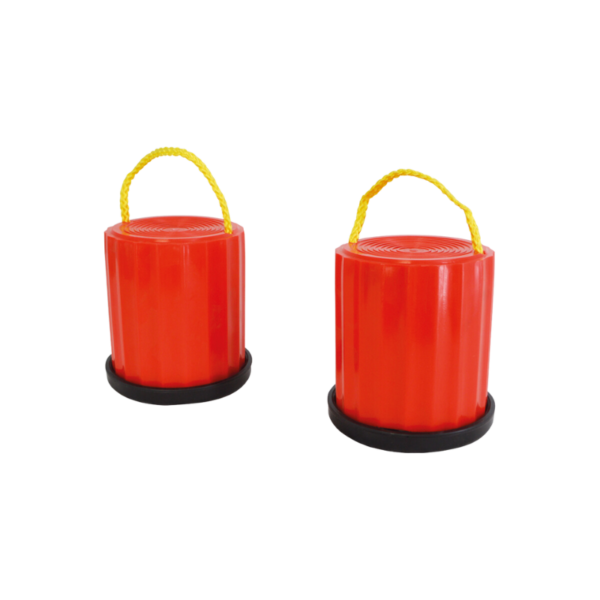 De forme cylindrique pour une meilleure initiation à l’équilibre et à la motricité. Base en caoutchouc antidérapante. Coloris : rouge et cordelette bleue. La paire. Ø11cm. Hauteur 12cm.