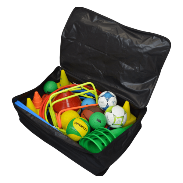 Sac multi-sports en nylon. Grande capacité, il peut aisément accueillir tout type de matériel (cerceaux, jalons, mini-haies,…).
