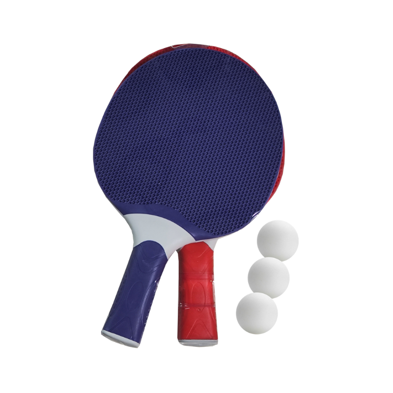Set composé de 3 balles et 2 raquettes (1 rouge et 1 bleue) très résistantes aux chocs et aux intempéries (pluie et soleil). Le revêtement structuré et injecté en TPR facilite la prise en main et offre un très bon confort de jeu.